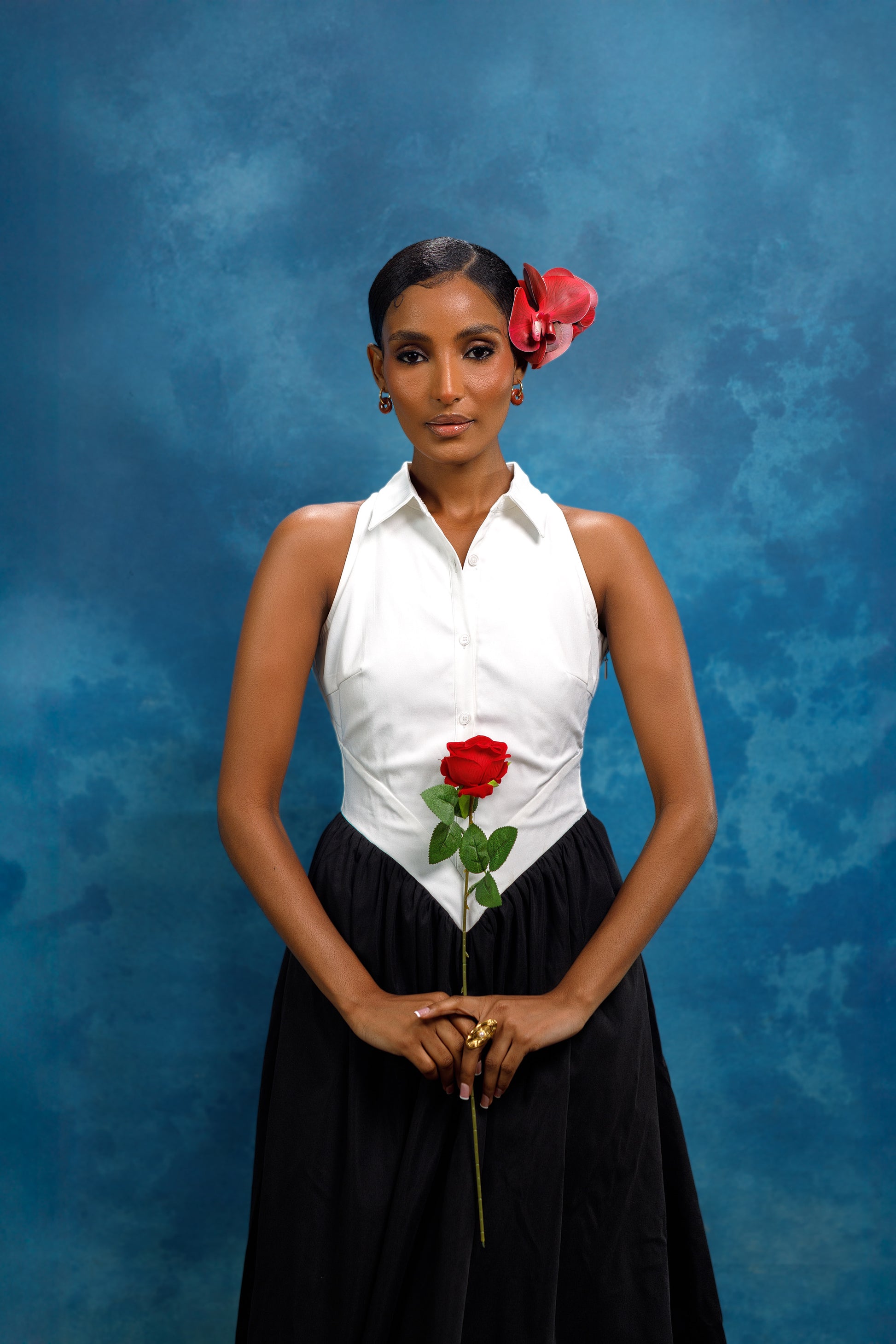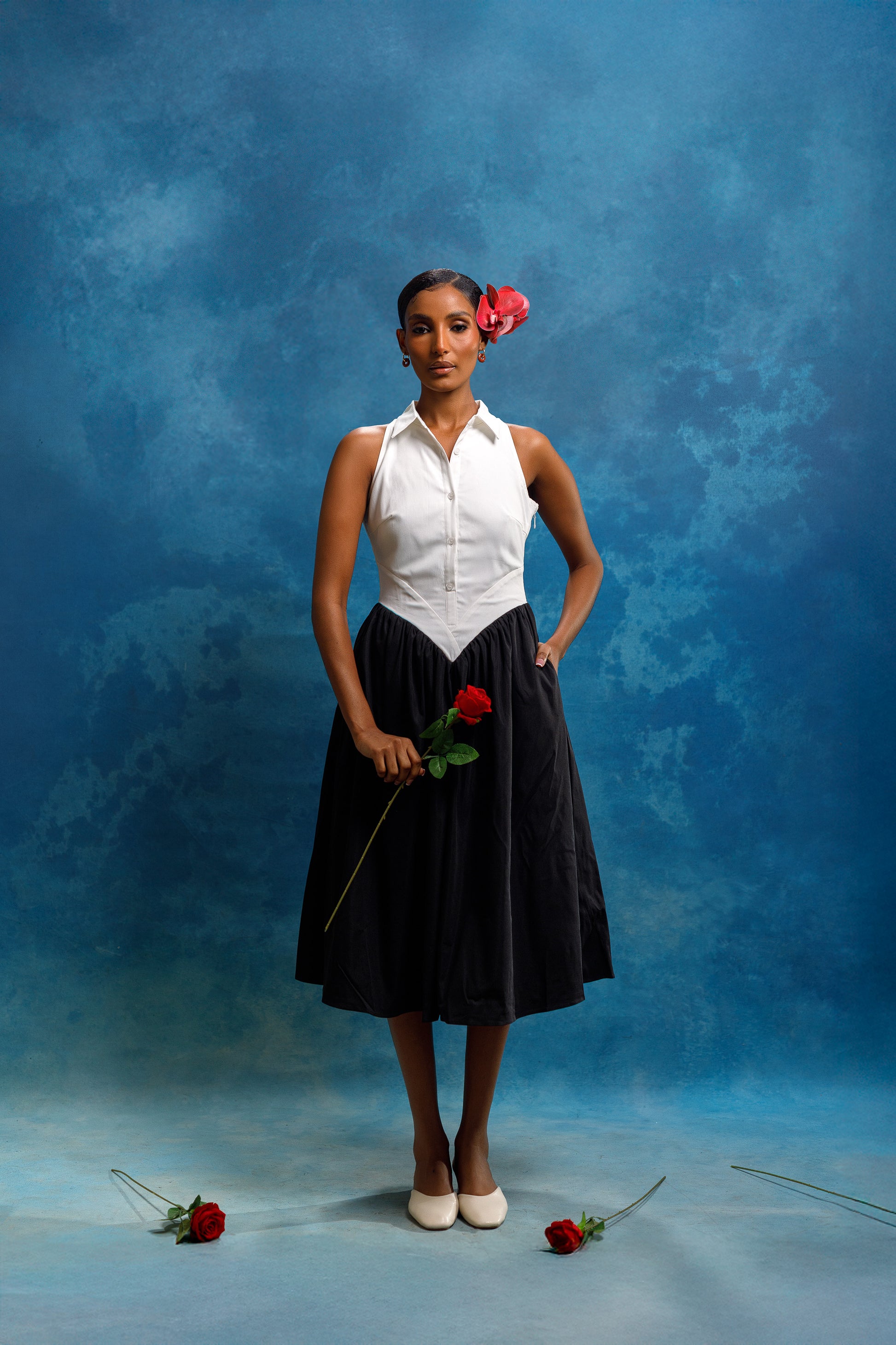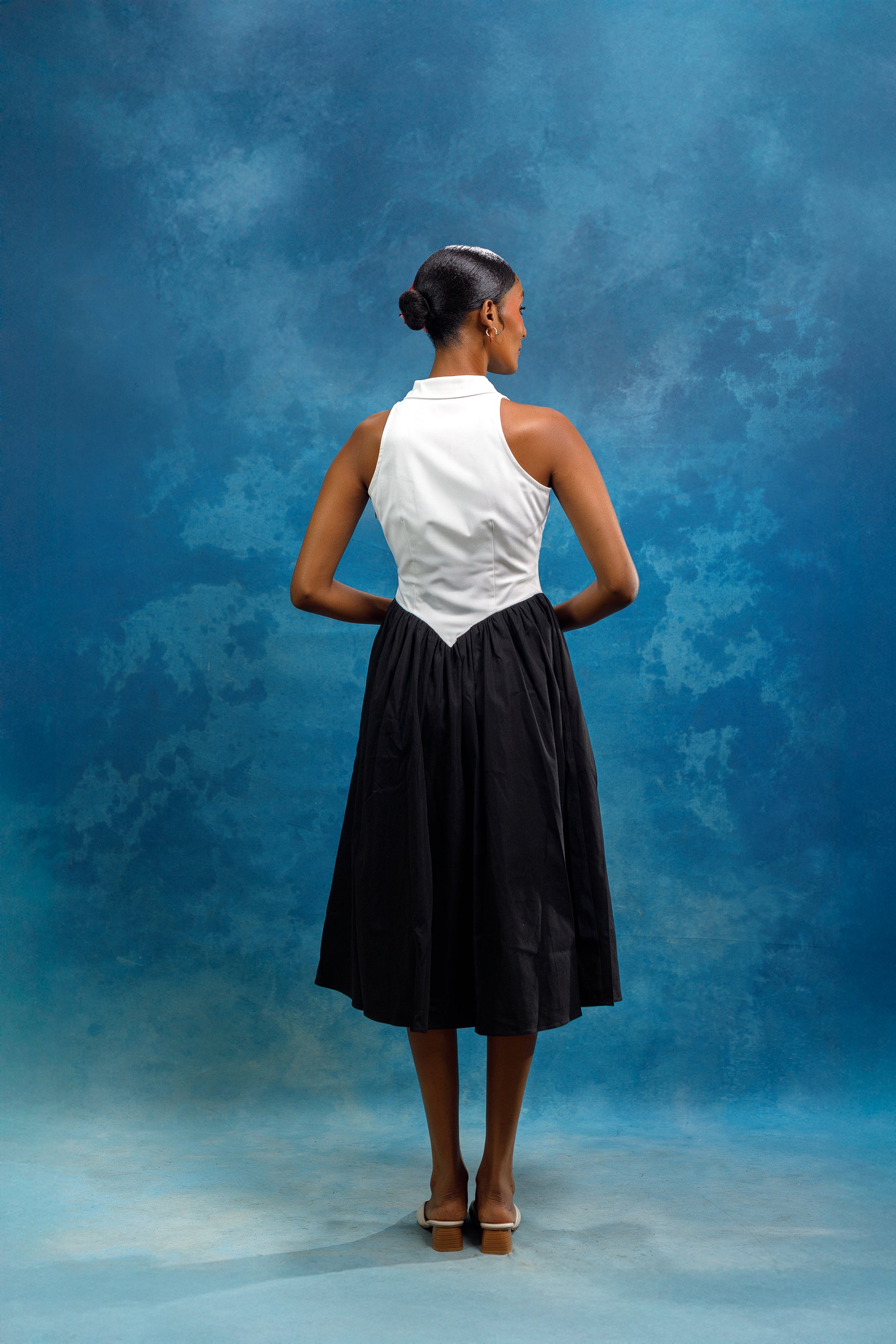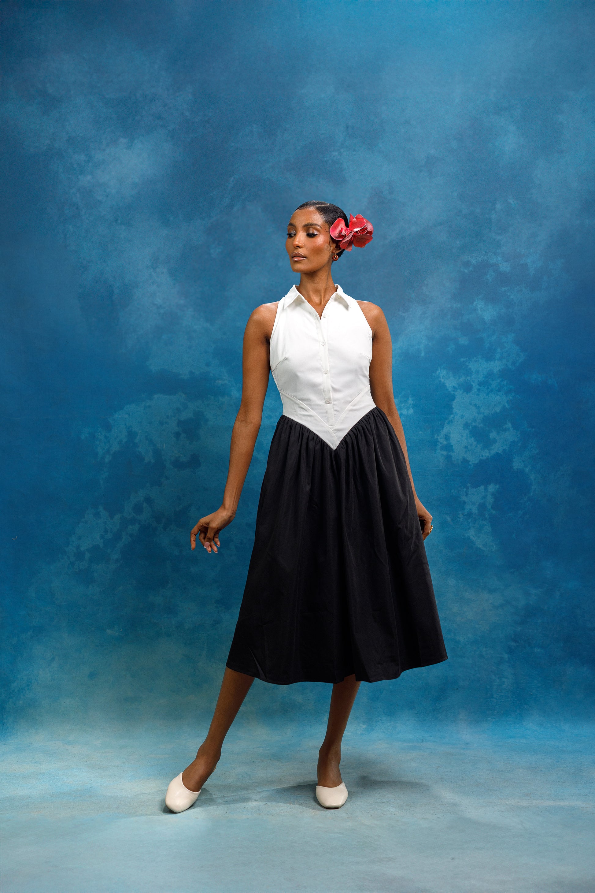 The Agoa Dress is a classic black and white dress, perfect for summer and vacation wear. With waist detailing and a button-up design, it offers a sophisticated and timeless look. Its lightweight fabric makes it ideal for polo events and other outdoor occasions. Elevate your style with this elegant dress.