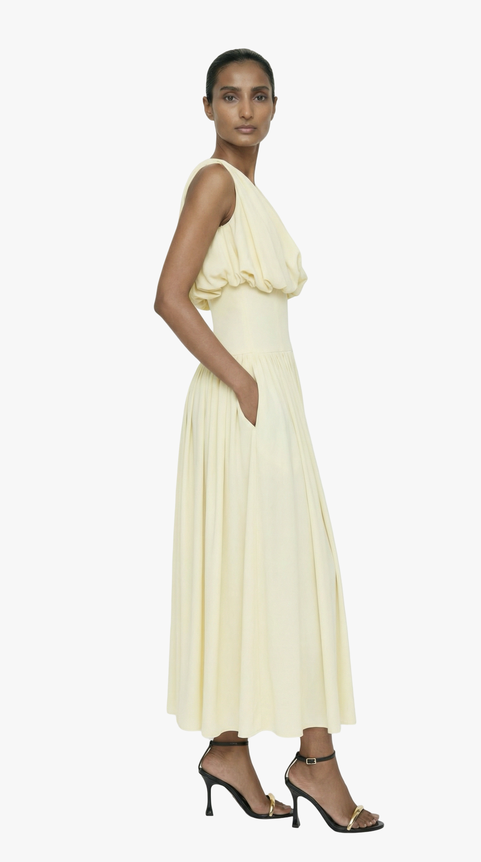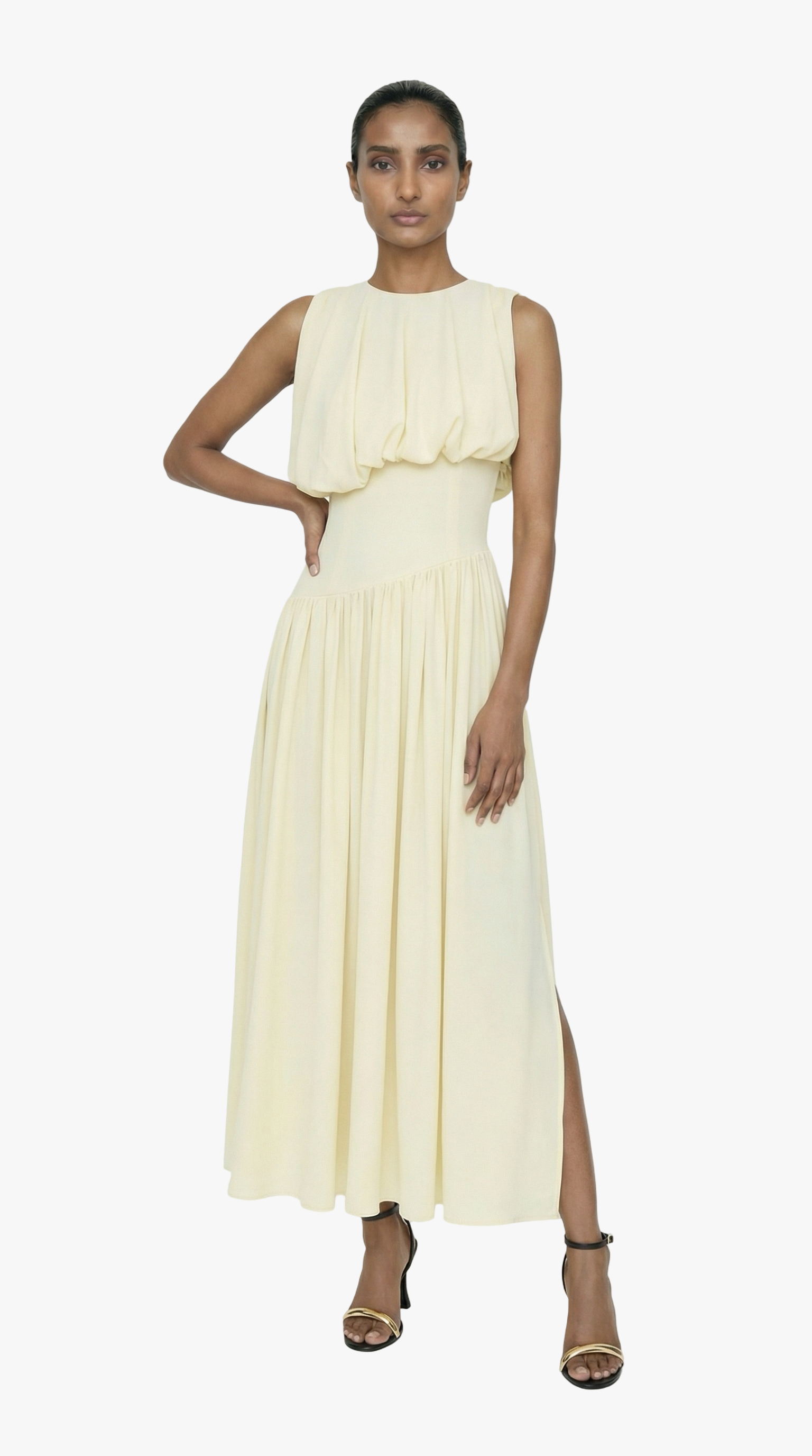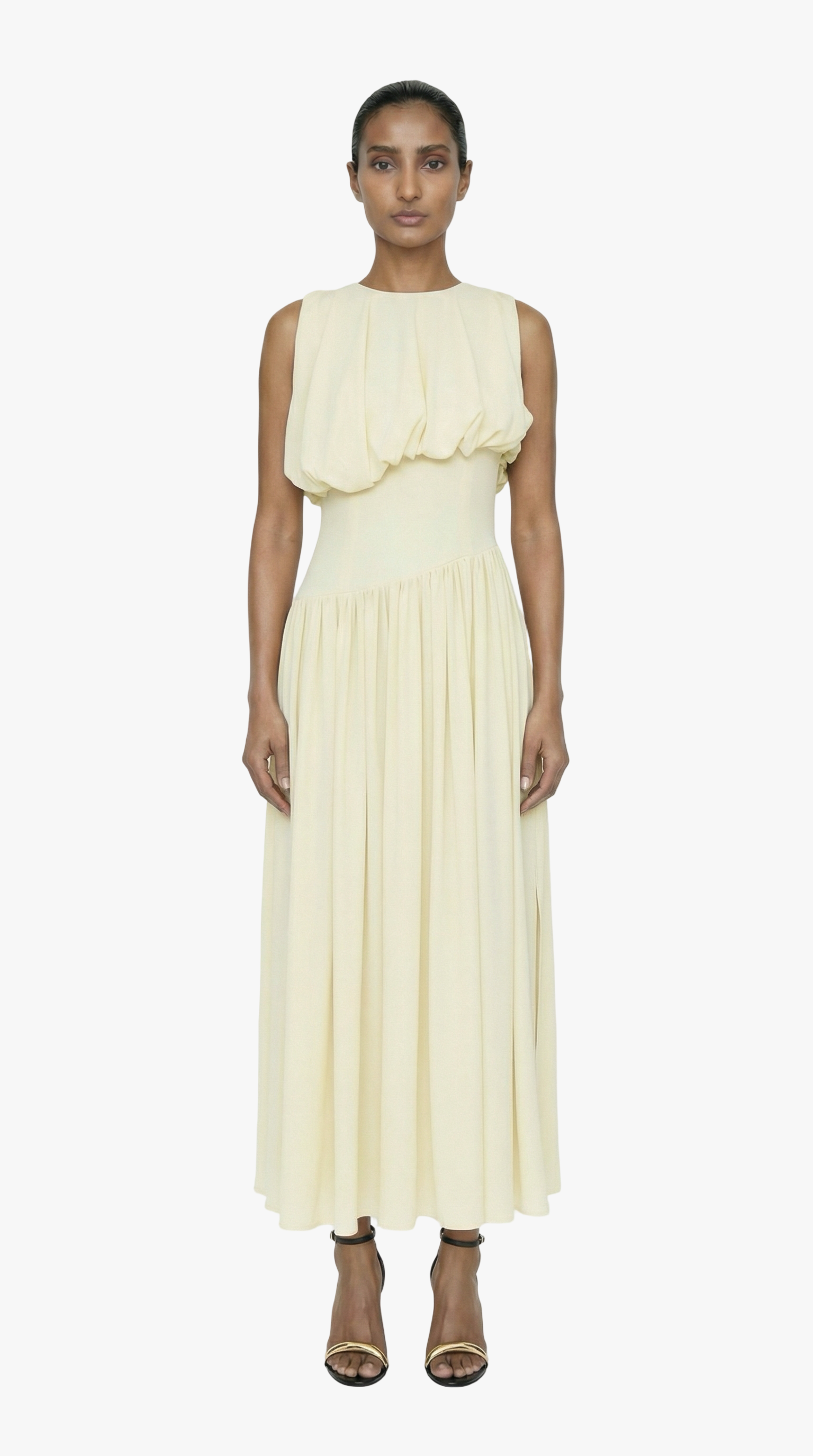 Expertly designed for the summer season, the Diana Dress features a lightweight, non-stretch crepe fabric that is perfect for warm weather. The blouson bodice and crew neck offer a flattering silhouette.