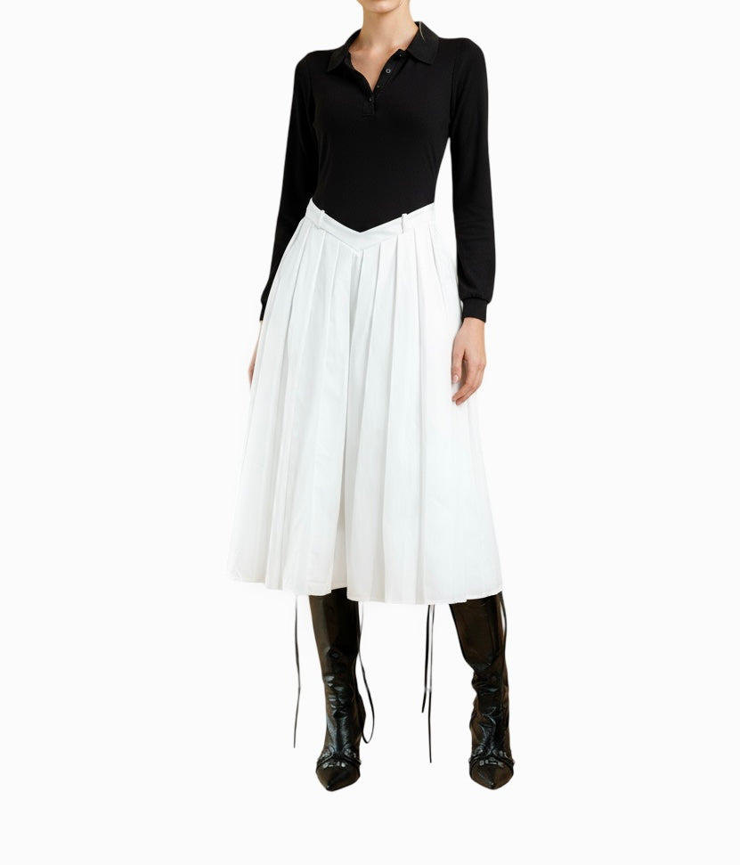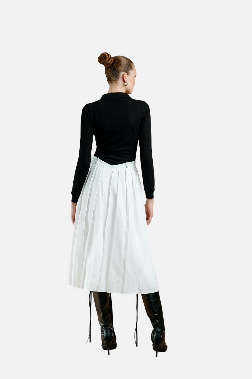 Crafted from a mid weight, low stretch twill, the Sonia Dress offers structured comfort with a pleated waist that flatters the silhouette. Its jersey bodice provides a soft, unlined feel contrasted by a fully lined skirt for a smooth finish. Featuring a collared neckline, long sleeves, and a discreet side zip, this midi-length dress balances refinement with function. Additional details include a partial button placket and on-seam side pockets, making it a versatile choice for polished, professional wear.